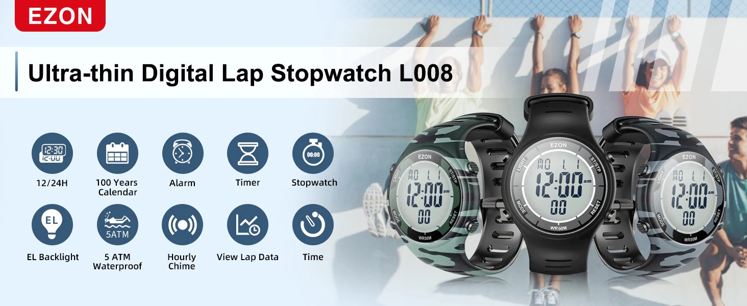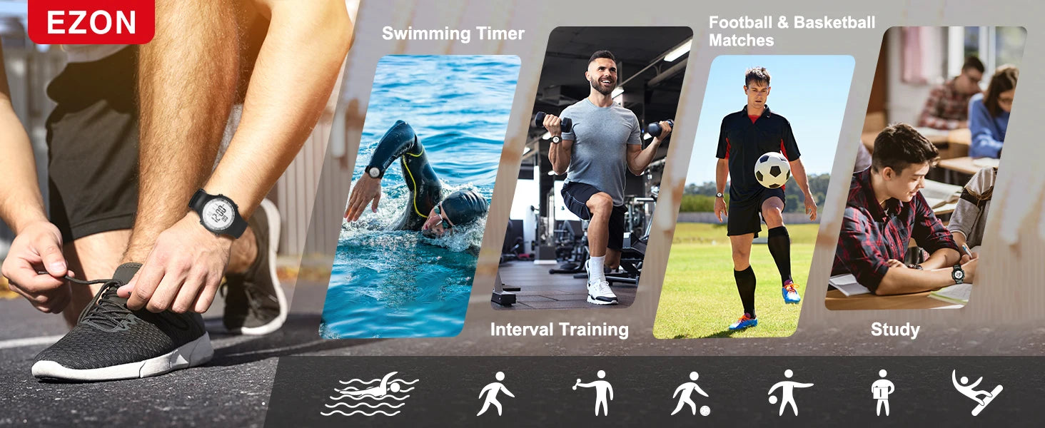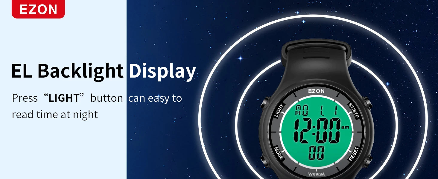 EZON Digital Sports Watch L008D, Waterproof Sports watch with Interval Timer/Chronograph/Lap Timing/Alarm for Men and Women