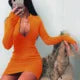 Floor-Length Dress with Round Neck Long Sleeve Lace Decoration Solid Print Knit Hip Natural Waist Woven Chiffon Fabric