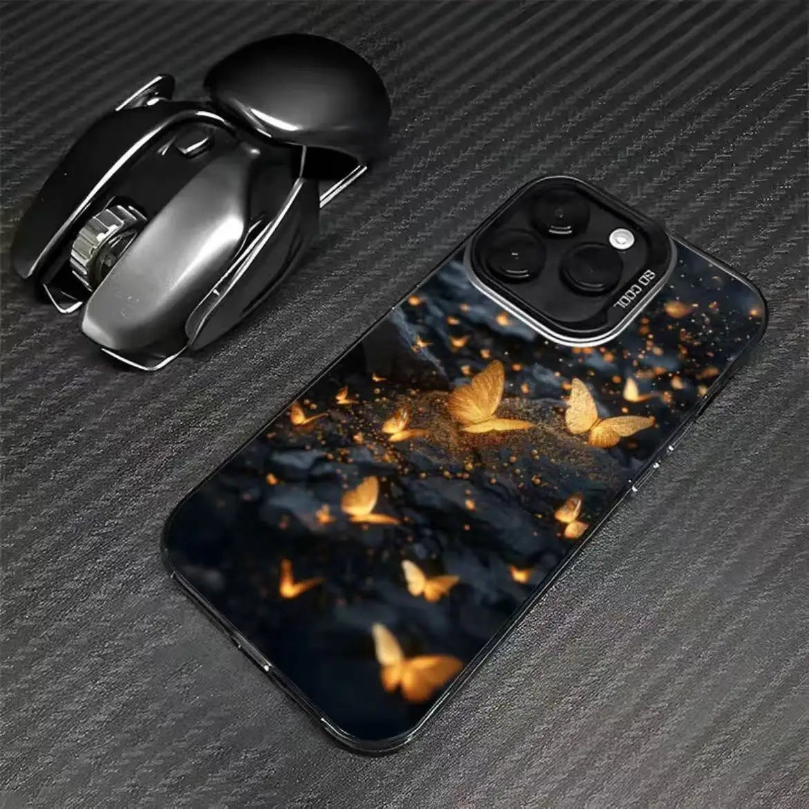 Light Gold Butterfly Printing Electroplated Silver Key TPU PC Mobile Phone Case for Iphone X Xr Xs 11 12 13 14 15 16 17 Pro Max