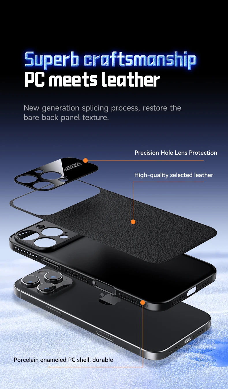 Luxury Ultra Thin Solid Color Leather Heat Dissipation Magsafe Phone Case for iPhone 17 16 15 14 Pro Max Light Grip Bumper Shell