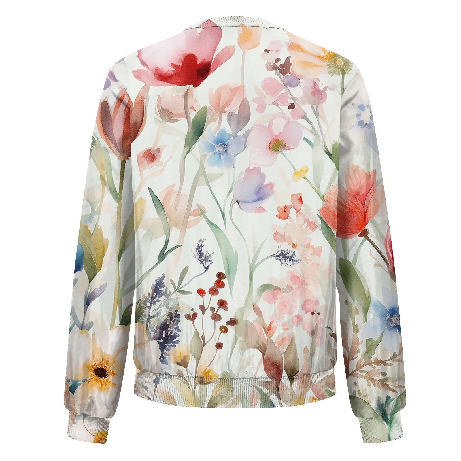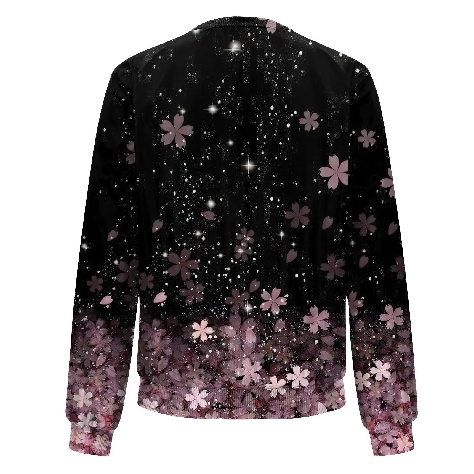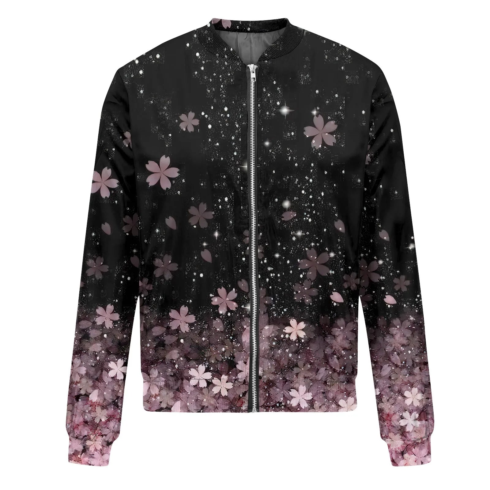 Women Elegant Zipper Bomber Jackets Spring Autumn Floral Printed Jackets Casual Coat Retro Outwear Round Neck Zipper Jackets