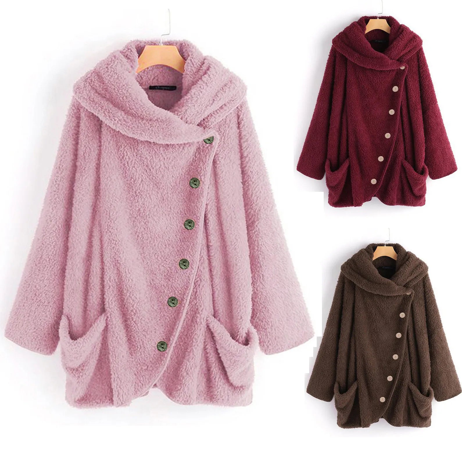 Autumn Winter Coat Women Warm Teddy Bear Coat Wool Jacket Female Plush Coat Hooded Jacket New Women's Coats Solid Color Jacket