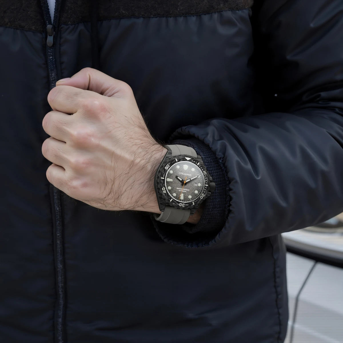 DREAMAS Men's Carbon Fiber Automatic Mechanical Diving Watch Swiss Luminous 500m Waterproof Gradient cold grey D0390G3