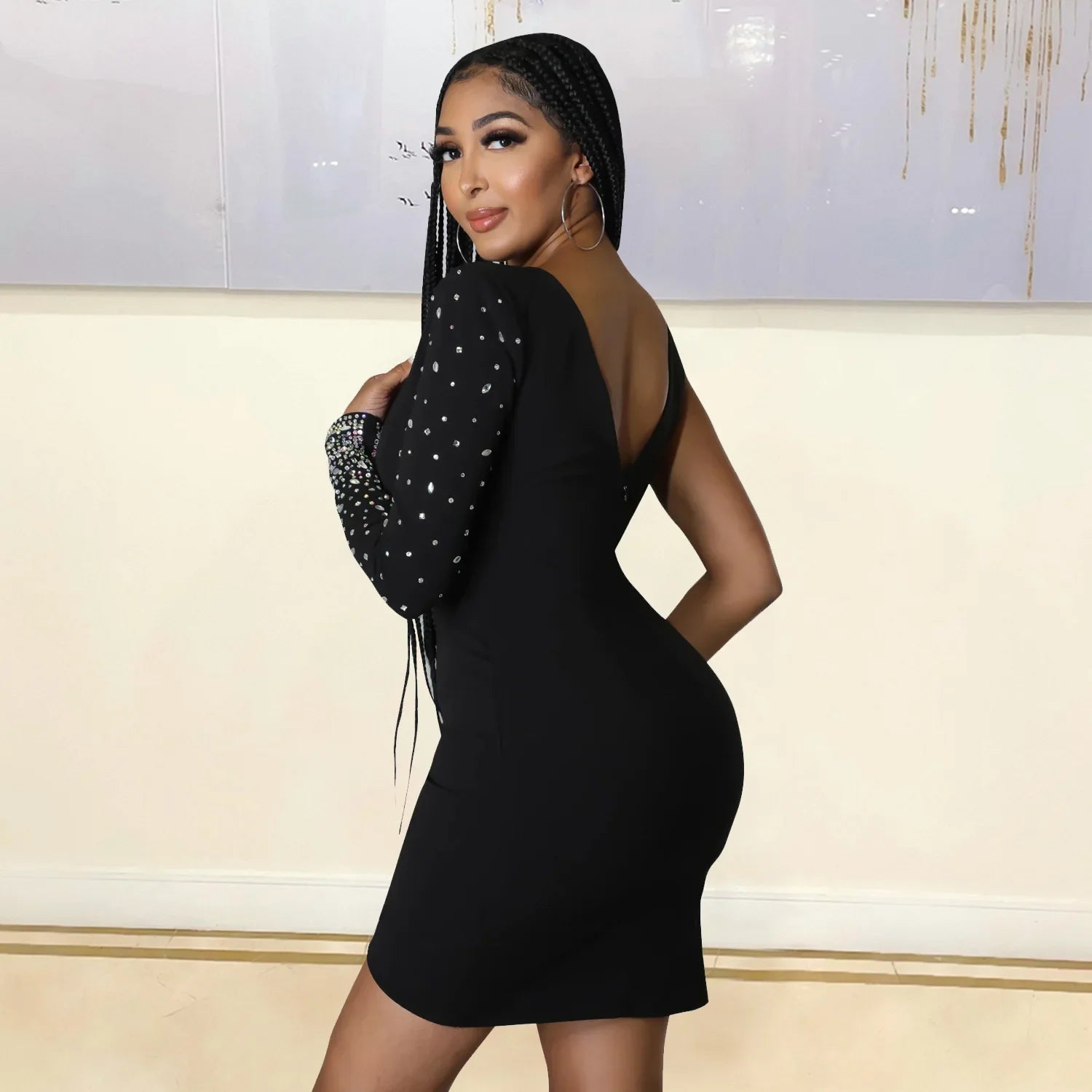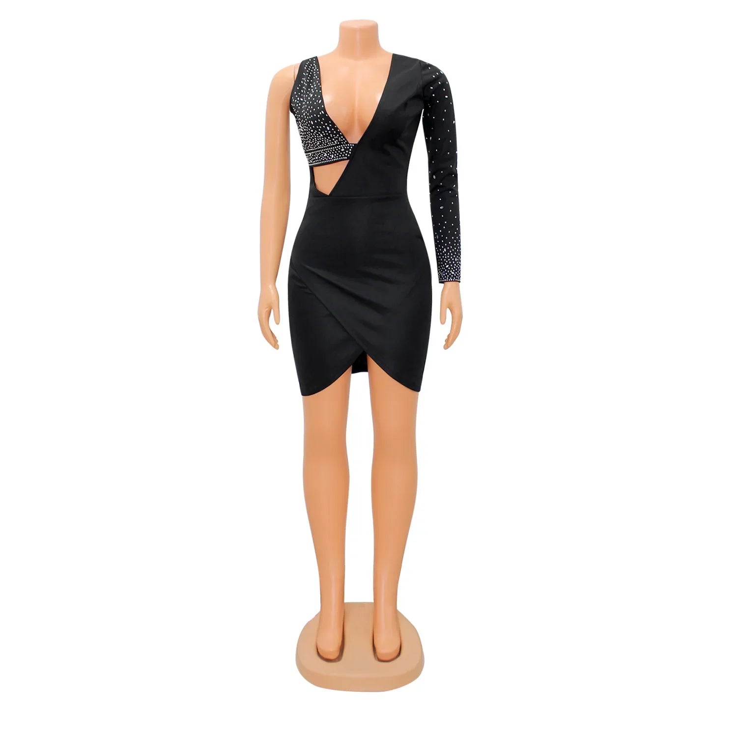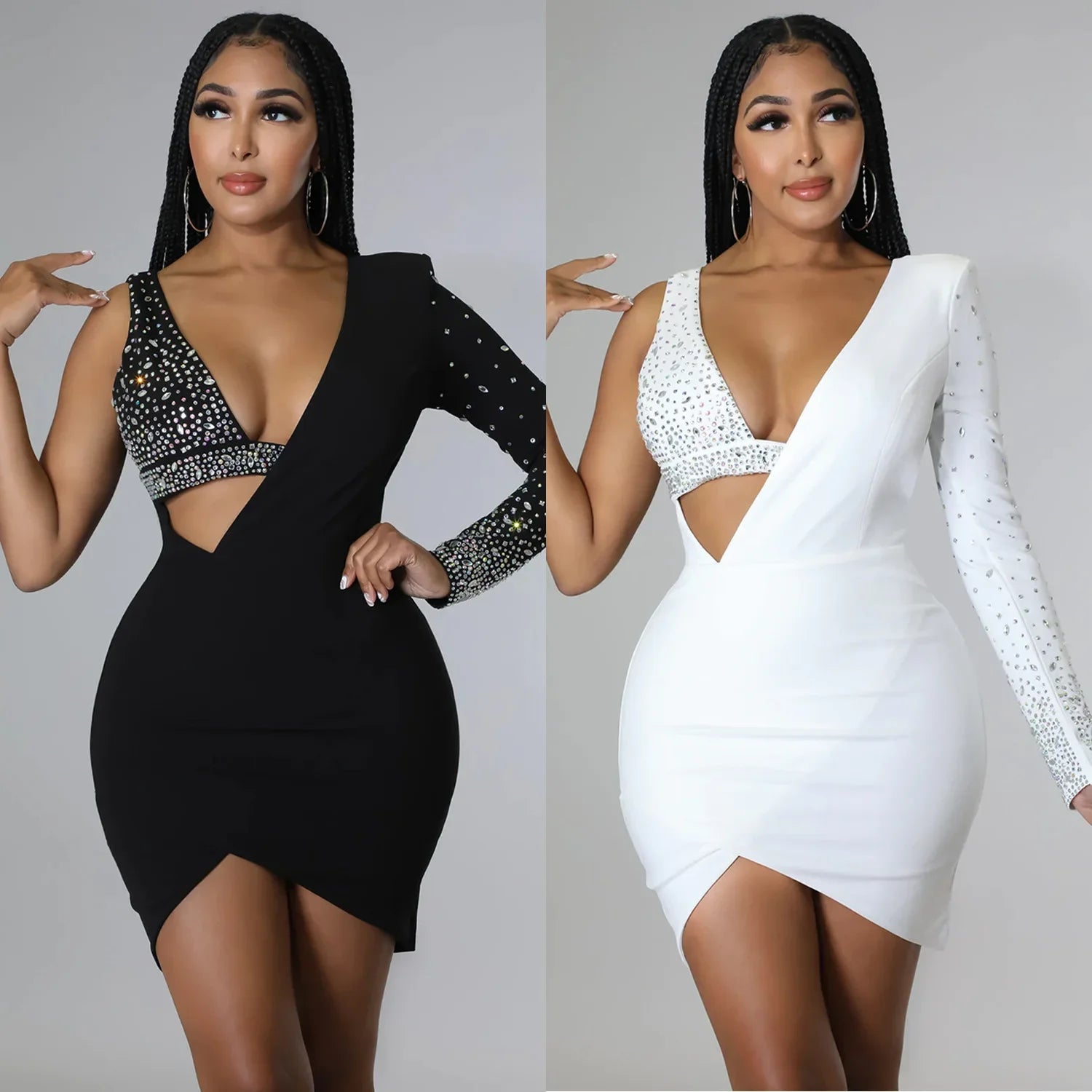 Fashionable Sexy Spaghetti Strap Rhinestone Embellished Cross-Border Summer Dress European American Style