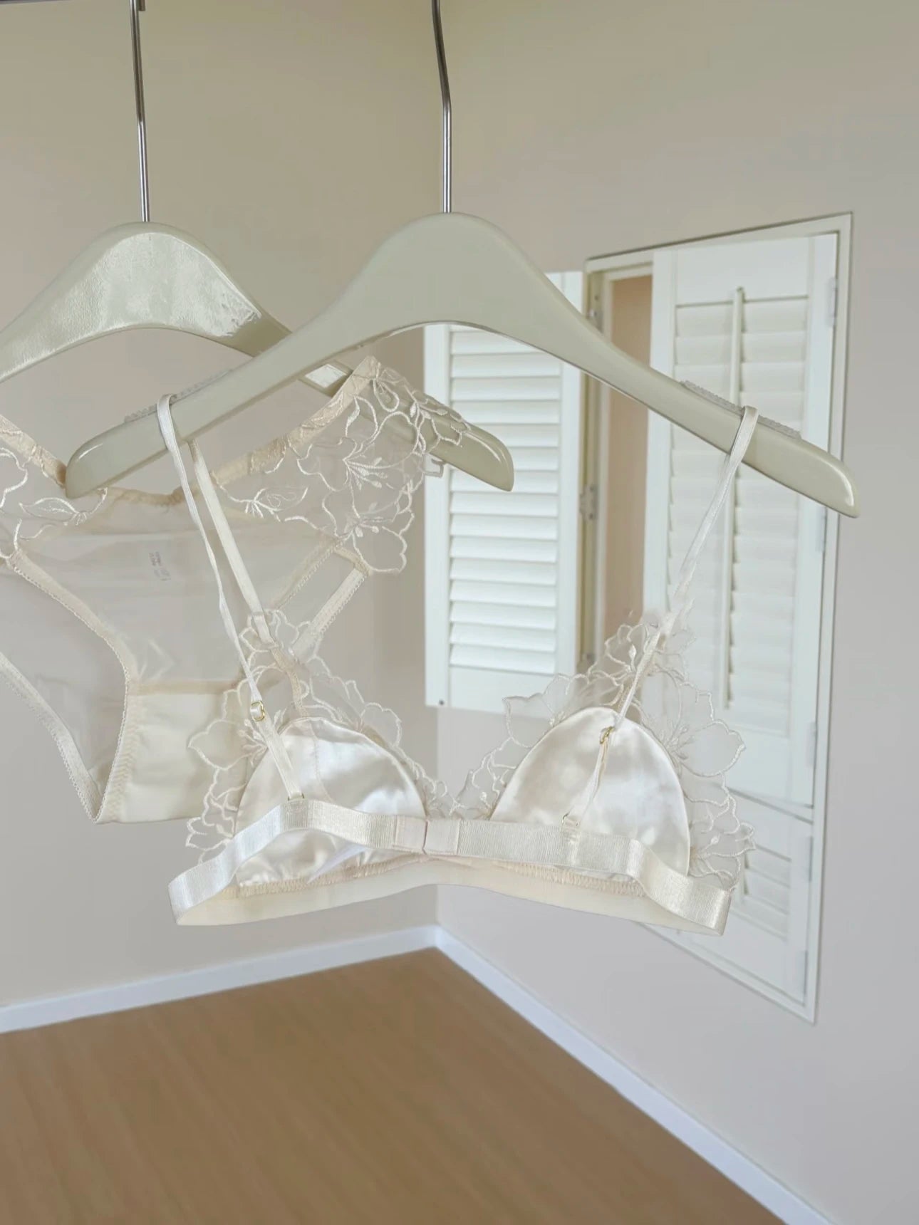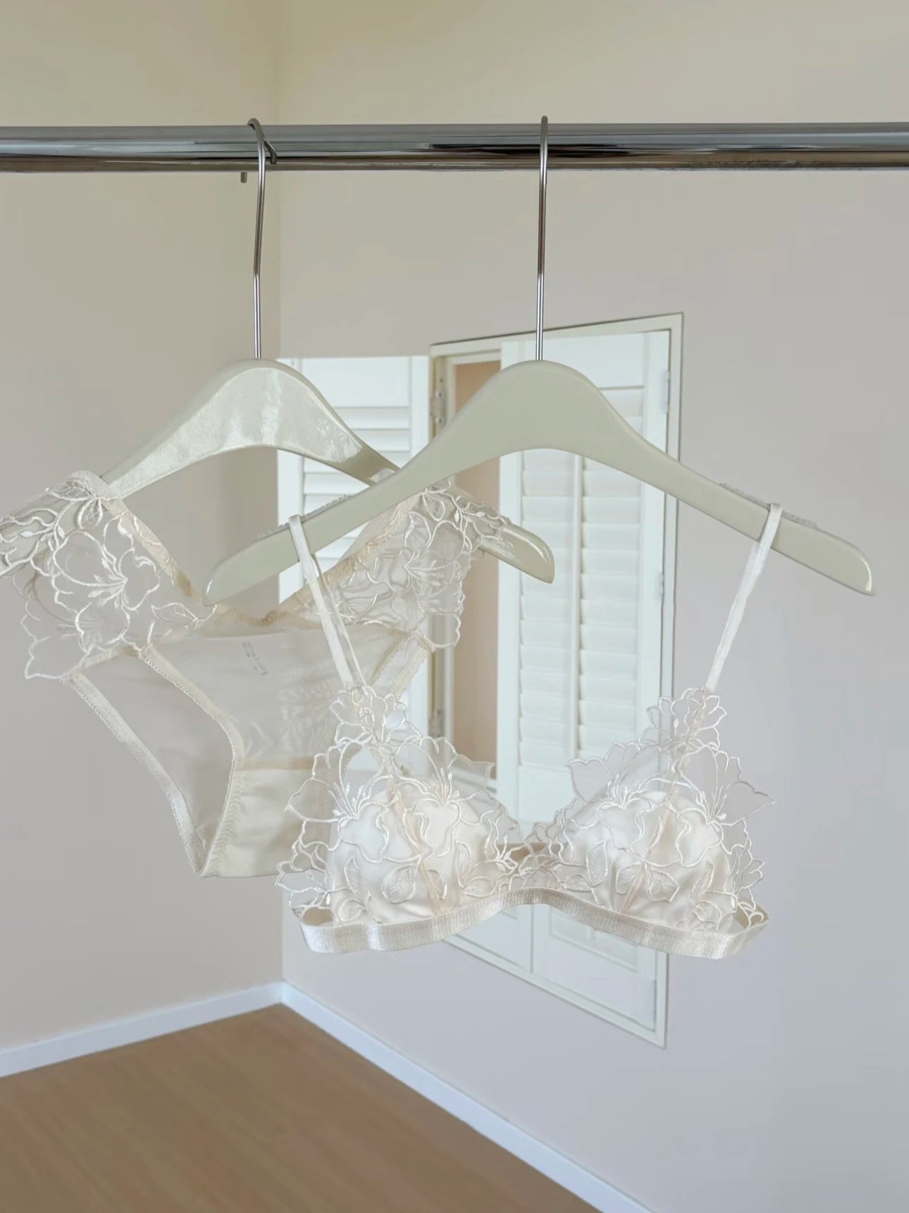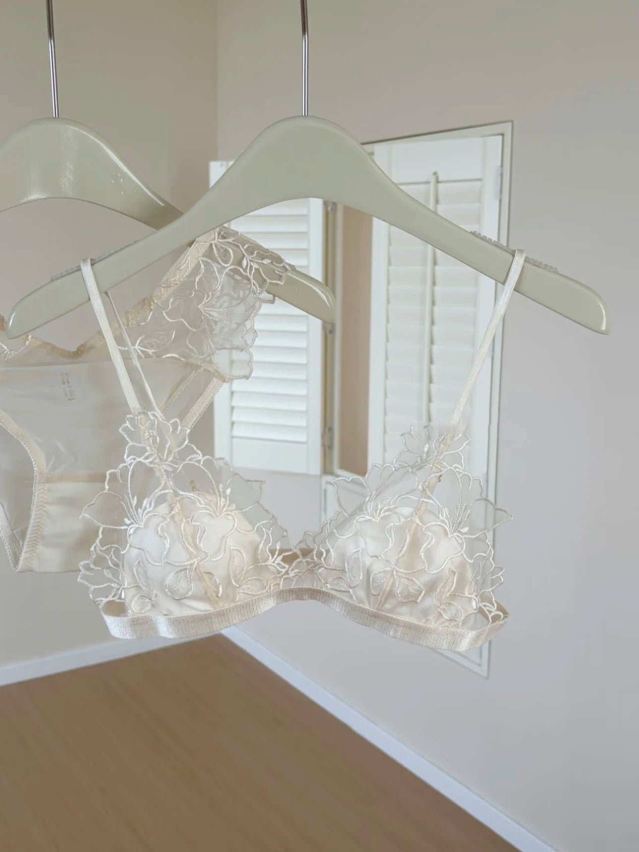 French Embroidery Lace Bralette Wireless Triangle Cup Bra for Women Elegant Lingerie Set Thin Straps Small Chest Cover MOYISU