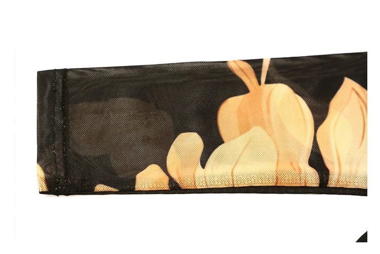 High Neck Long Sleeved Mesh Positioning Printed T-shirt Women Autumn Stretch Slim T Shirts Tops Female Base Tees HF8779