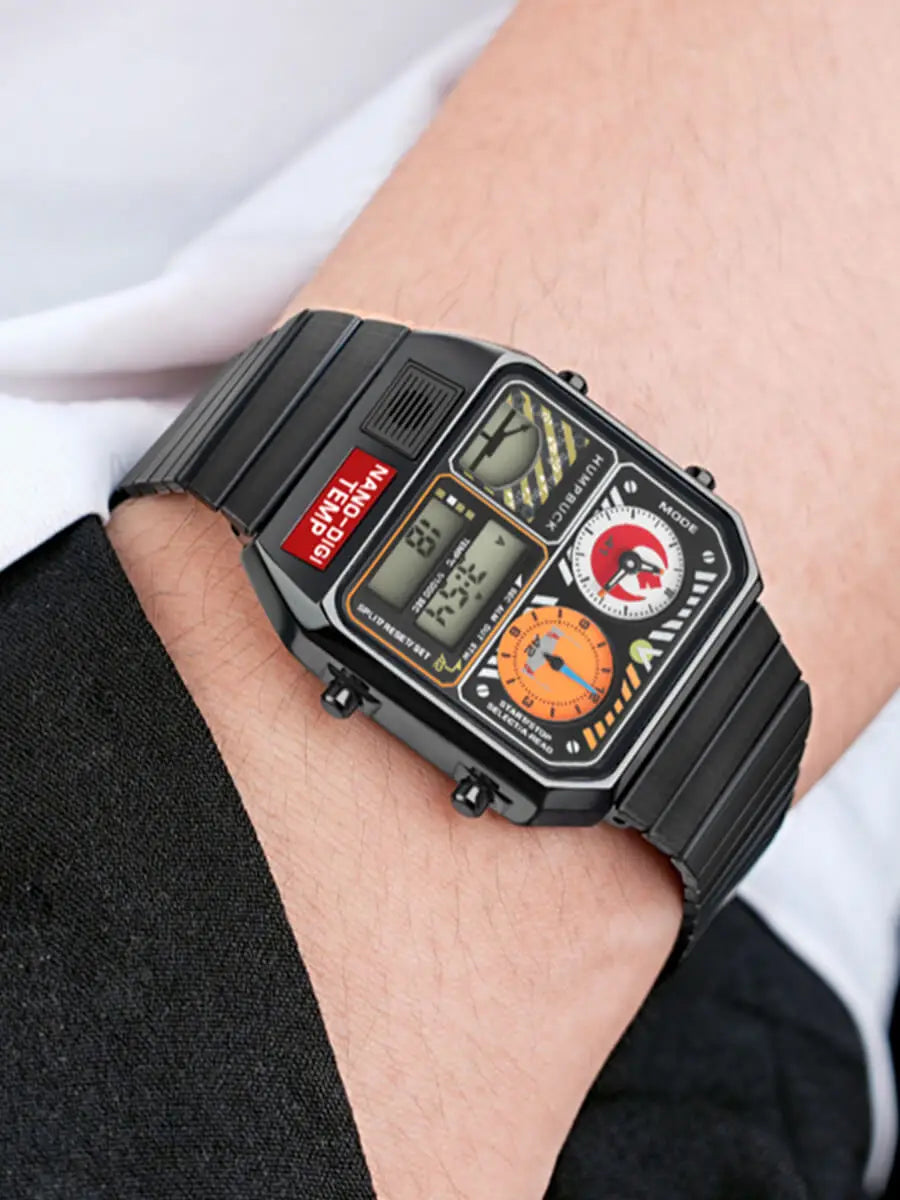 HUMPBUCK DIGITEMP Classic Design Stainless Steel Watches for men with LED Digital Display and Temperature Calendar
