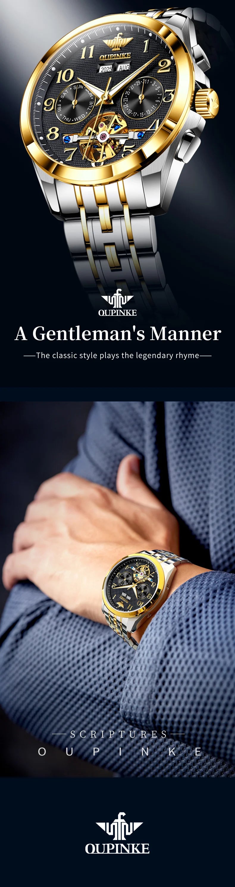 OUPINKE 3263 Automatic Mechanical Watch Multifunctional Dial Auto Date Waterproof Night light Watch Original Brand