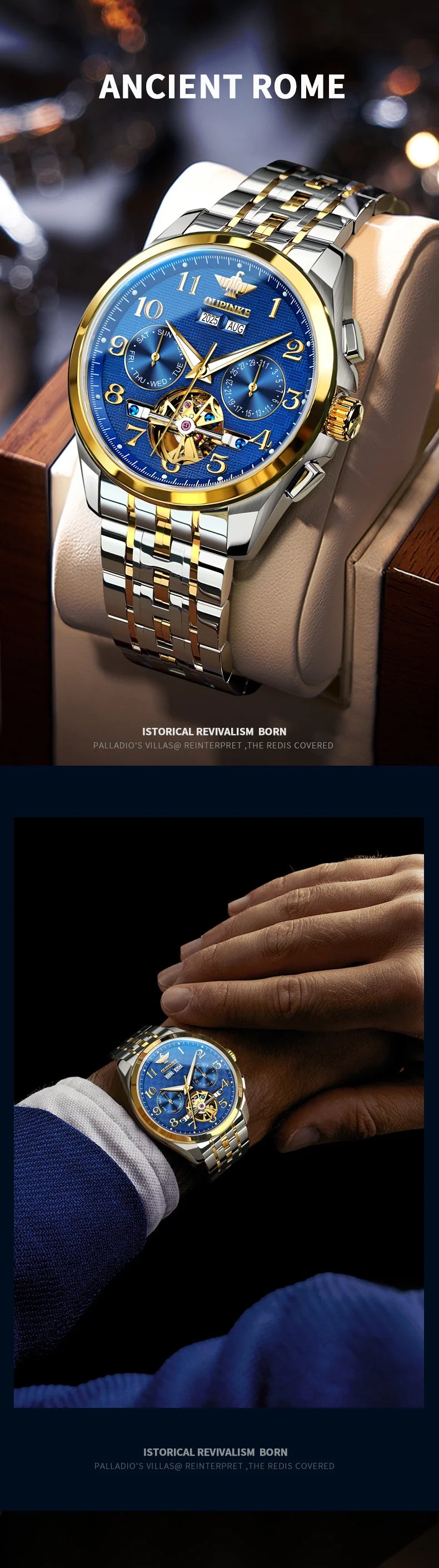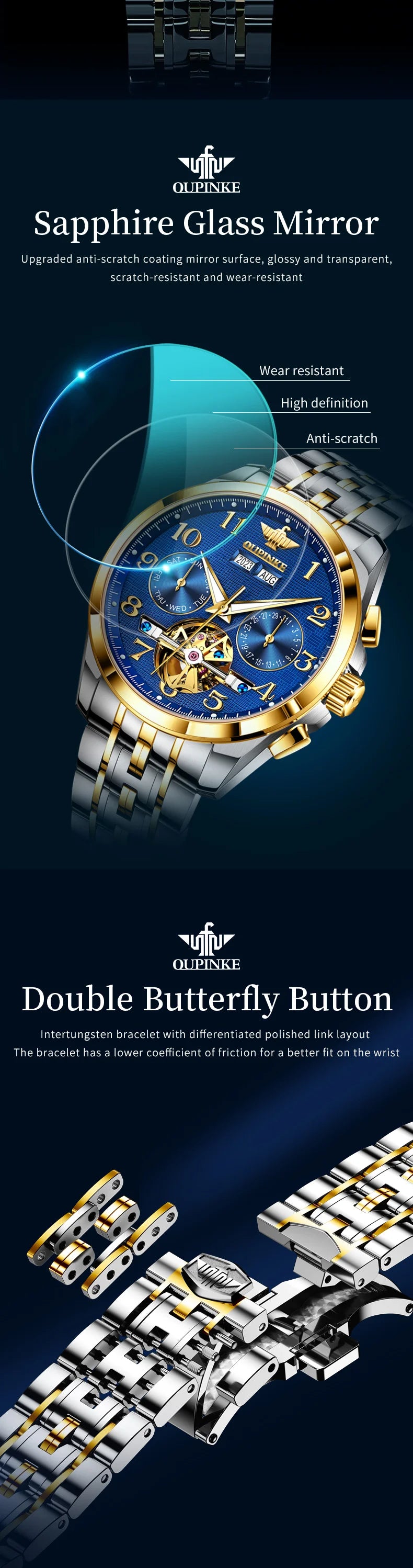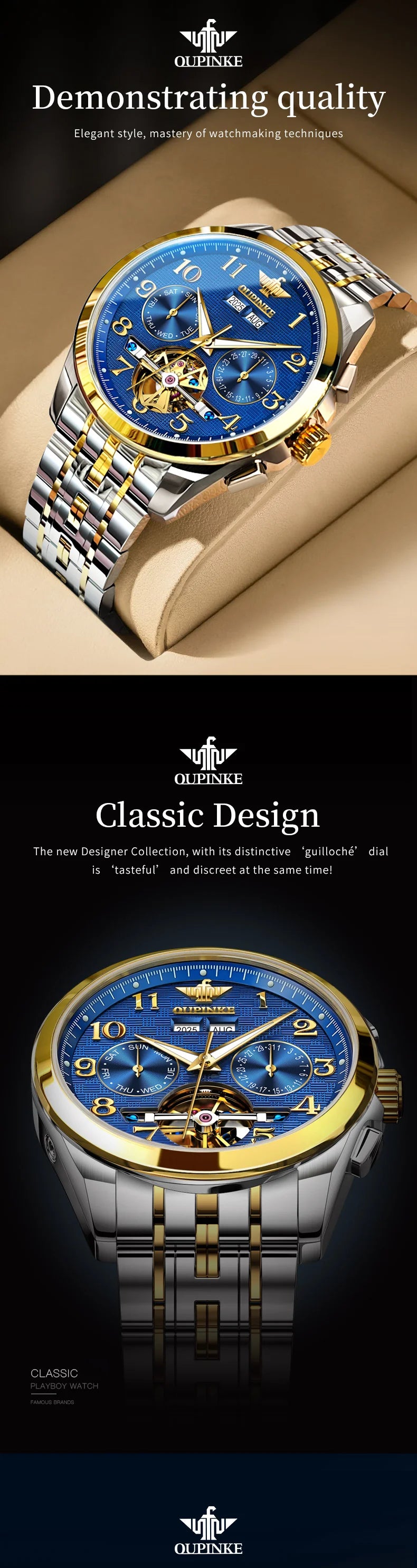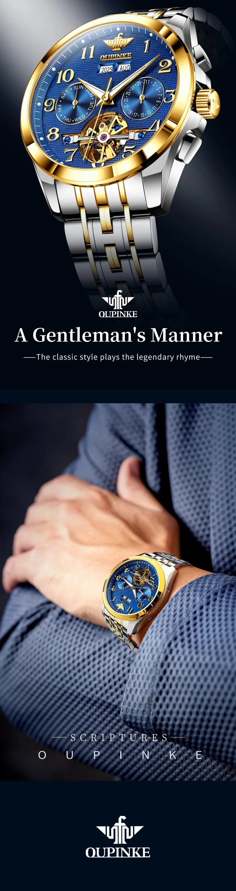 OUPINKE 3263 Mens Watch Luxury Flywheel Automatic Mechanical Watch 50M Waterproof Luminous Tungsten Steel Brand Watches New