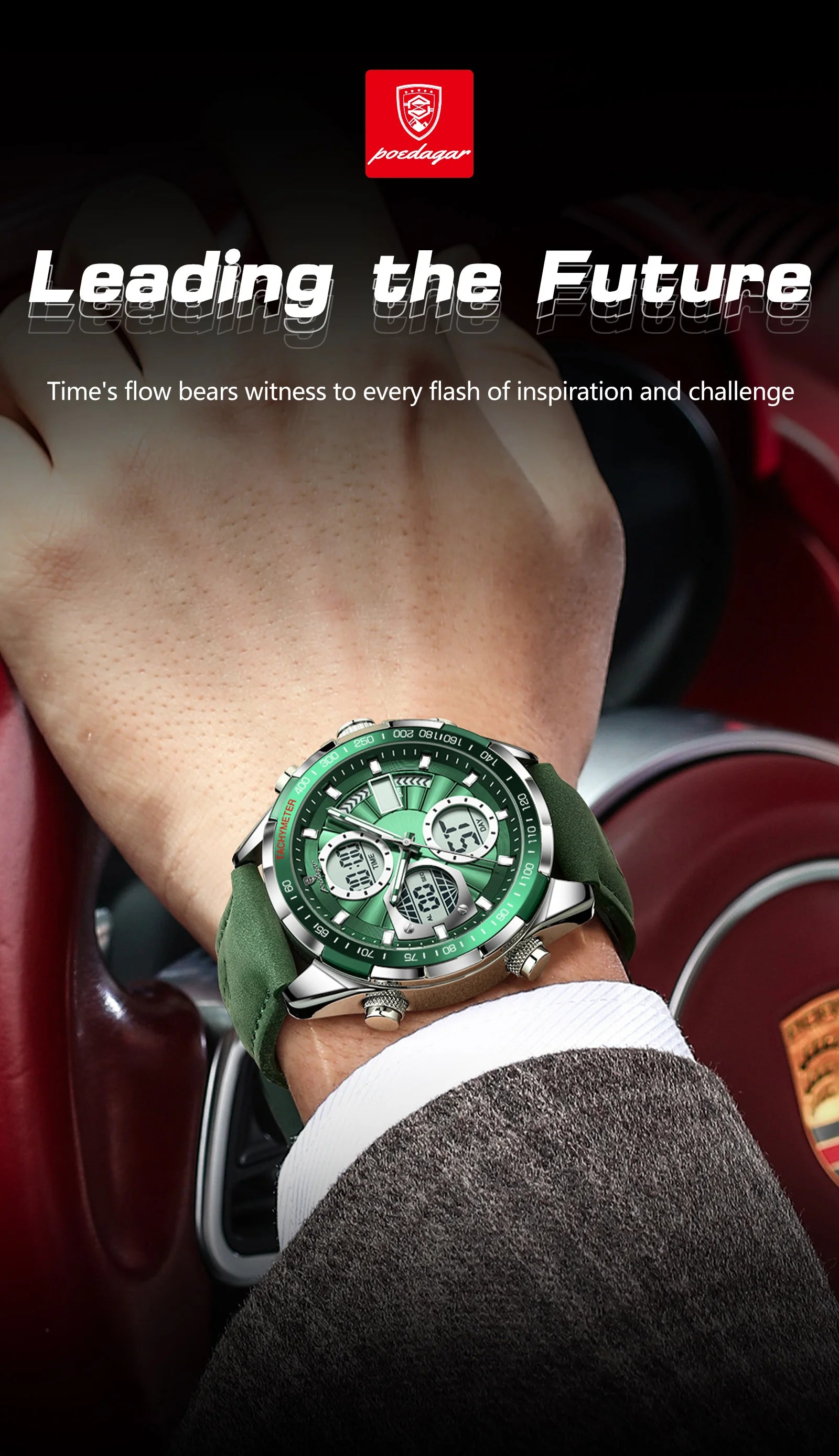 POEDAGAR LED Luxury Men Watch Luminous Week Date Dual Time Display Digital Man Clock Alarm Electronic Men's Quartz Watches Reloj