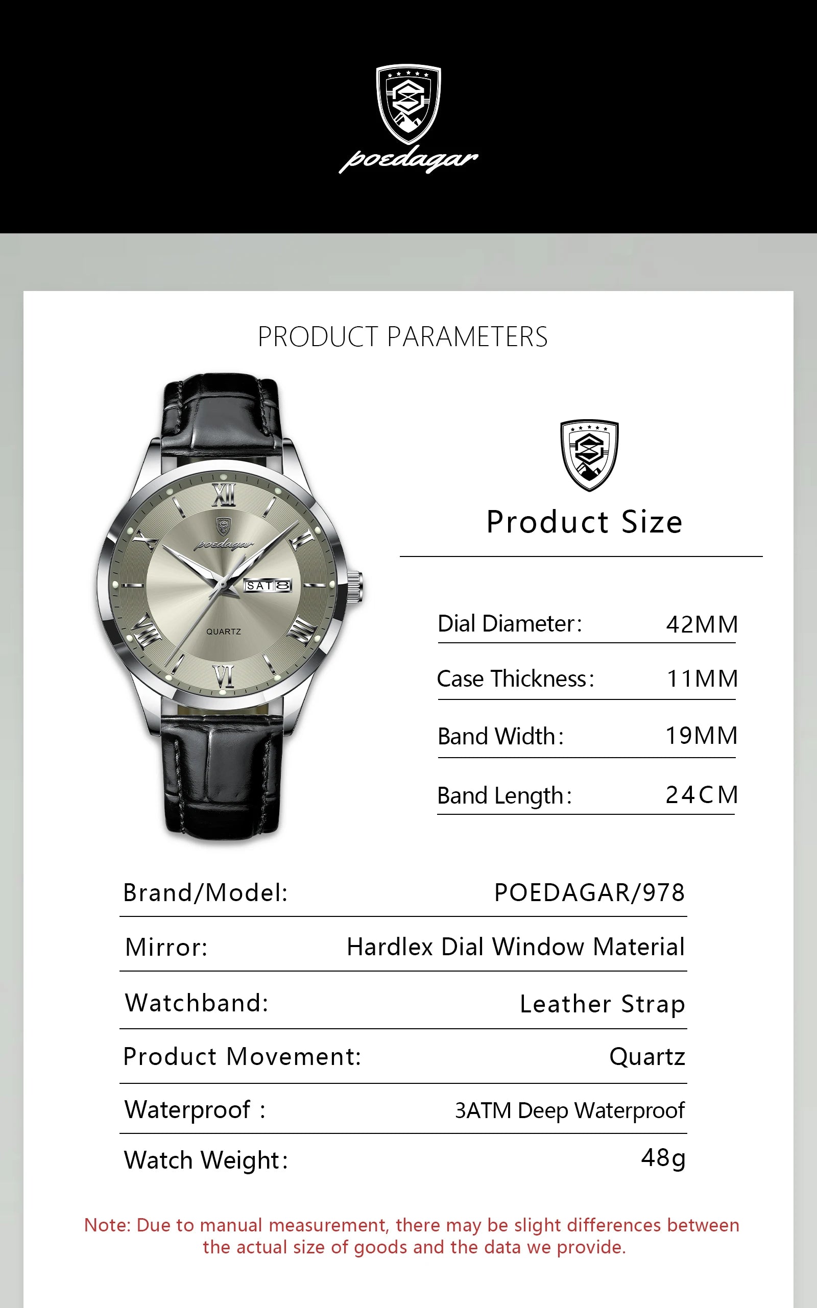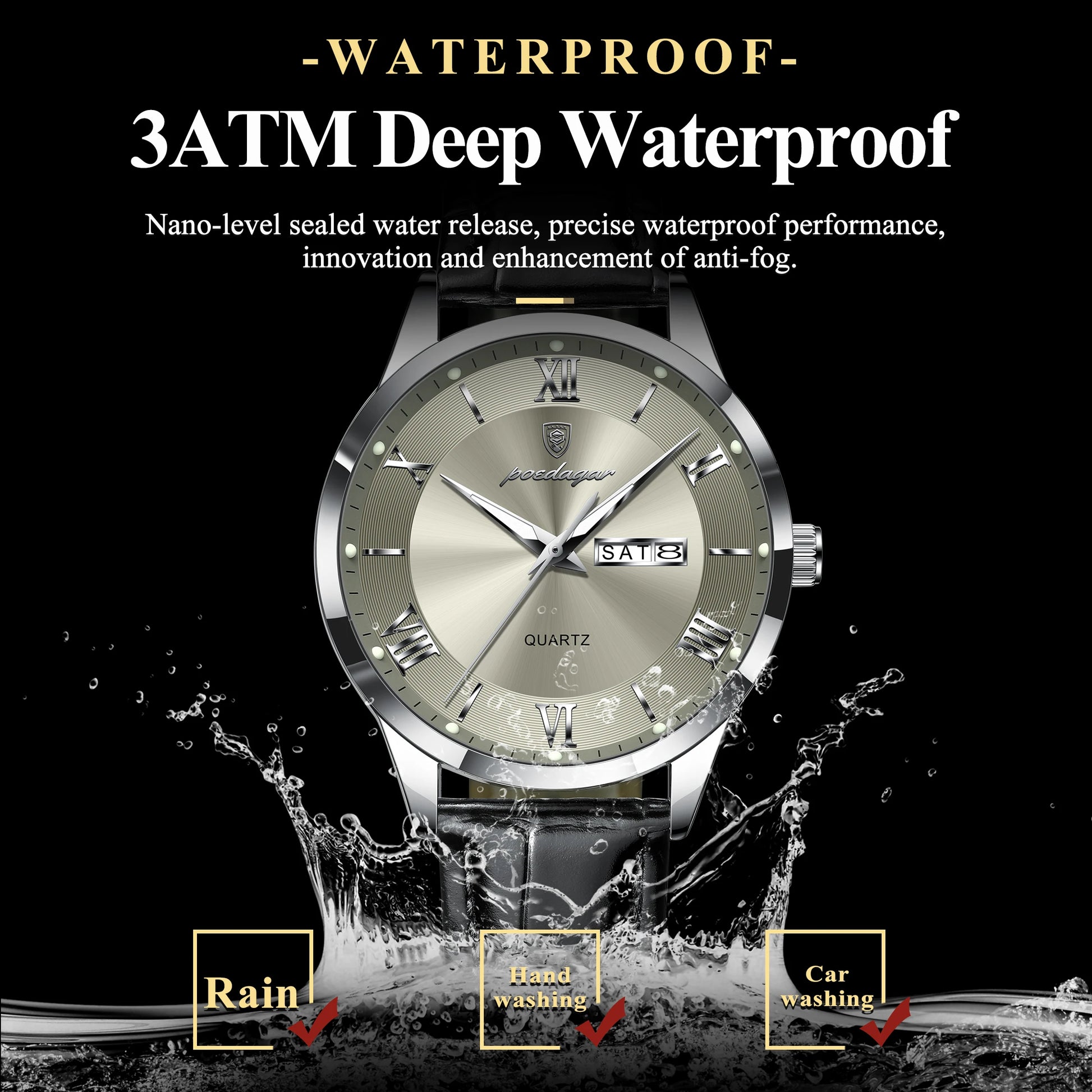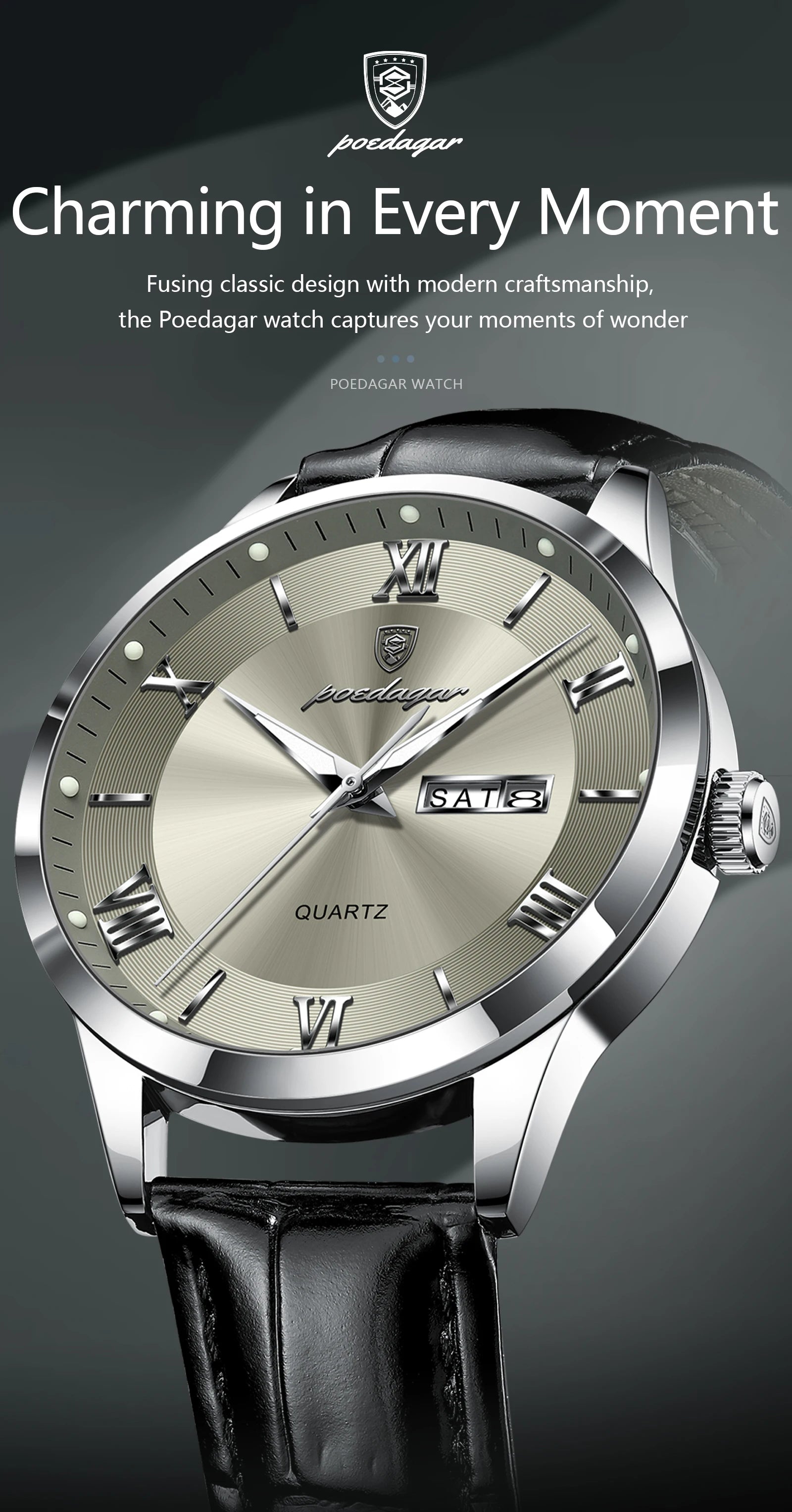 POEDAGAR Top Luxury Watch For Men Military Waterproof Luminous Date Week Man Wristwatch Leather Men's Quartz Watches Sport Reloj
