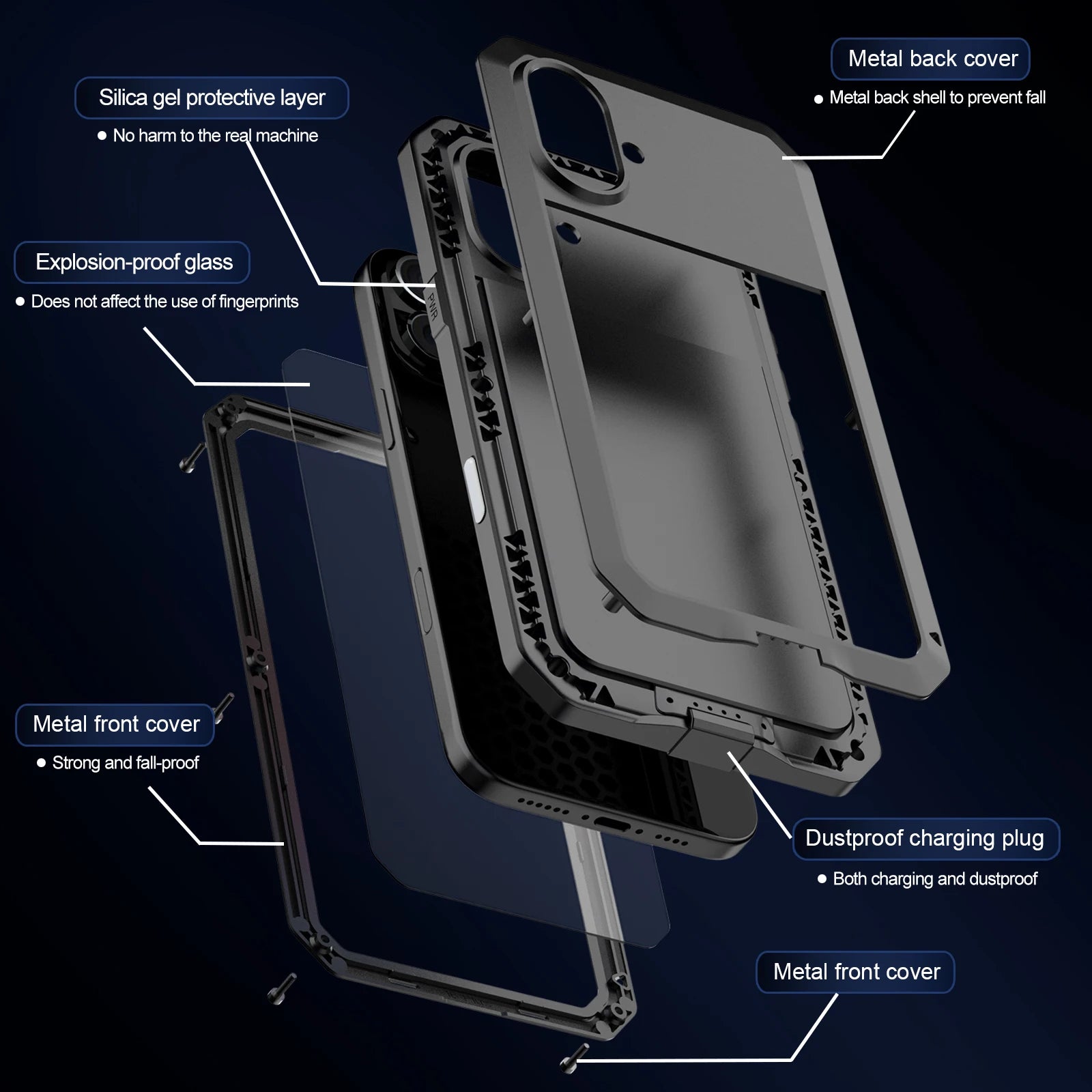 Shockproof Metal Glass Case for iPhone 17 16 15 14 Plus 13 12 11 Pro Max XR Xs Max SE 8 7 Heavy Duty Anti-slip Anti-Abrasion