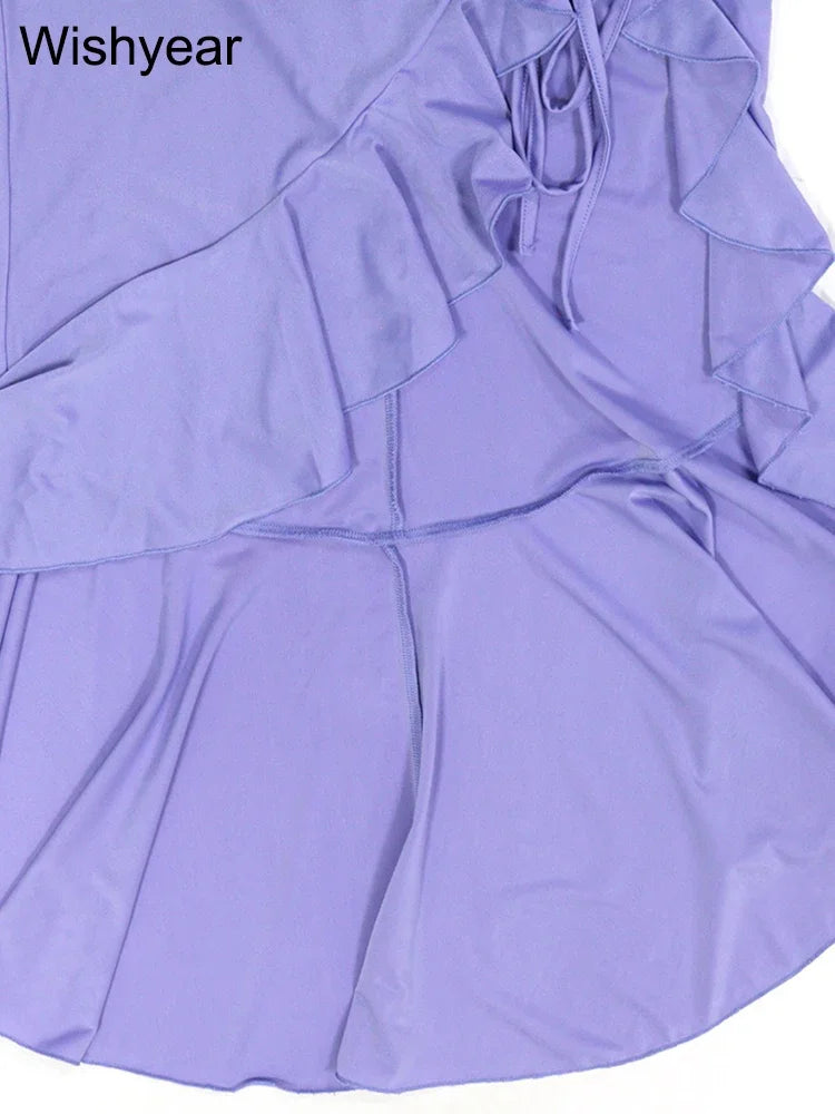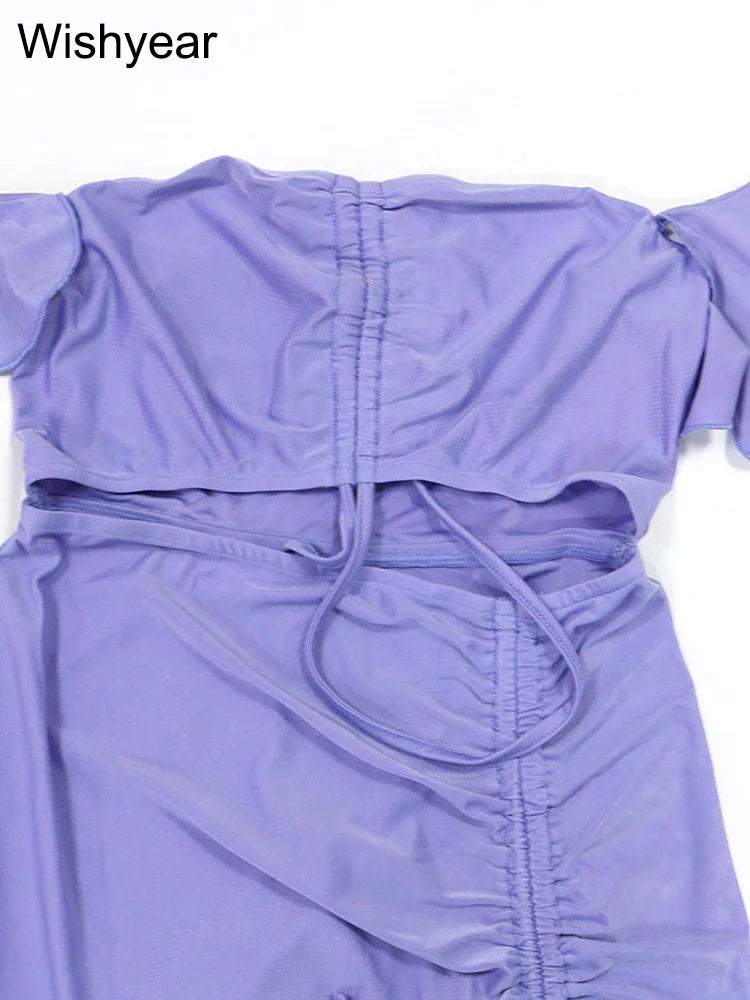 Showlder Backless Ruffles Irregular Dresses Woman Ruched Patchwork Hollow Out Bodycon Birthday Vestidos Autumn