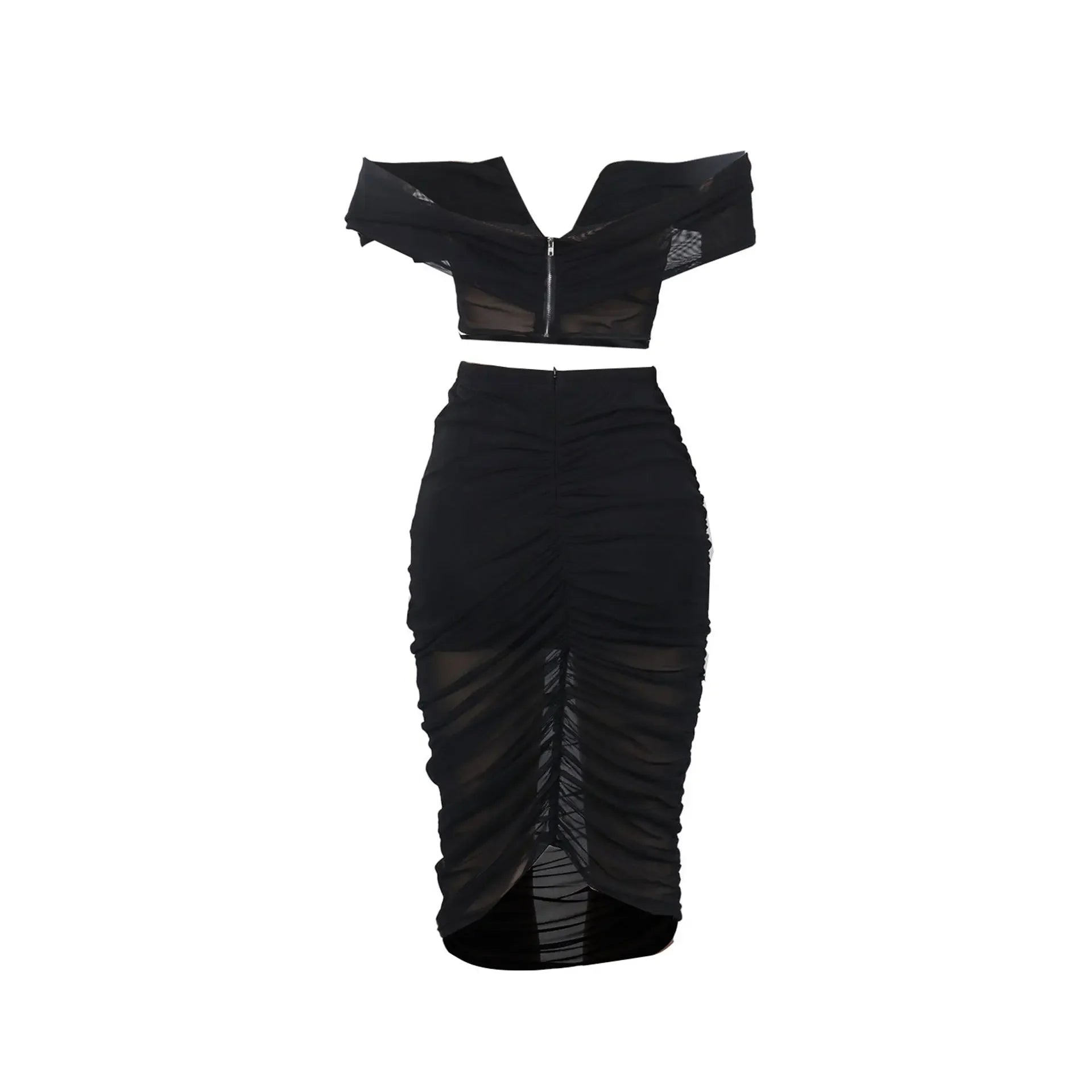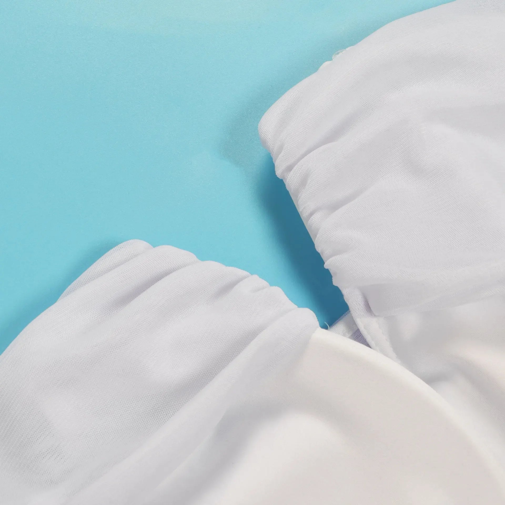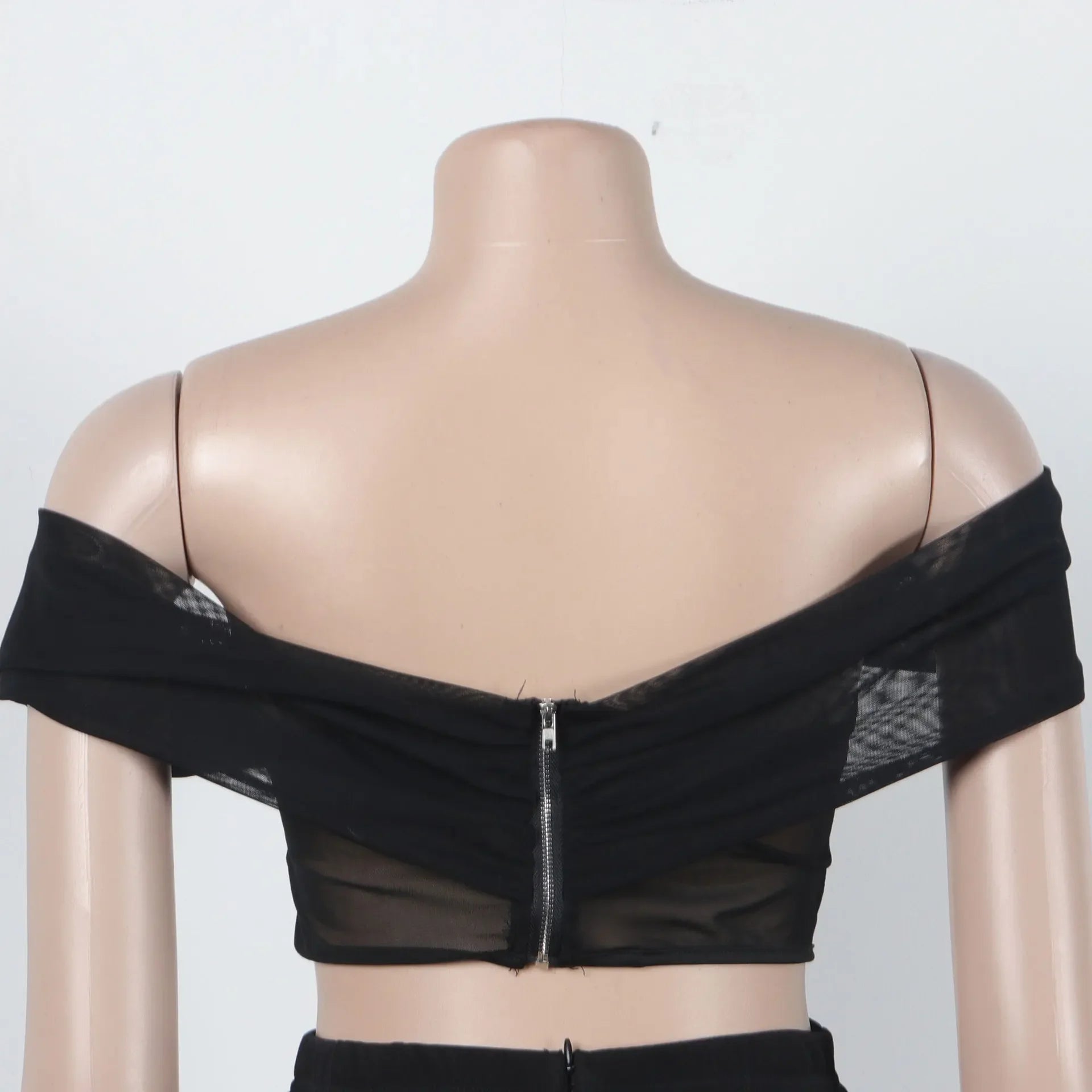 Slimming Mesh Splice Bum Covering Visibility Elastic Off-Shoulder 2-Piece Set European And American Style