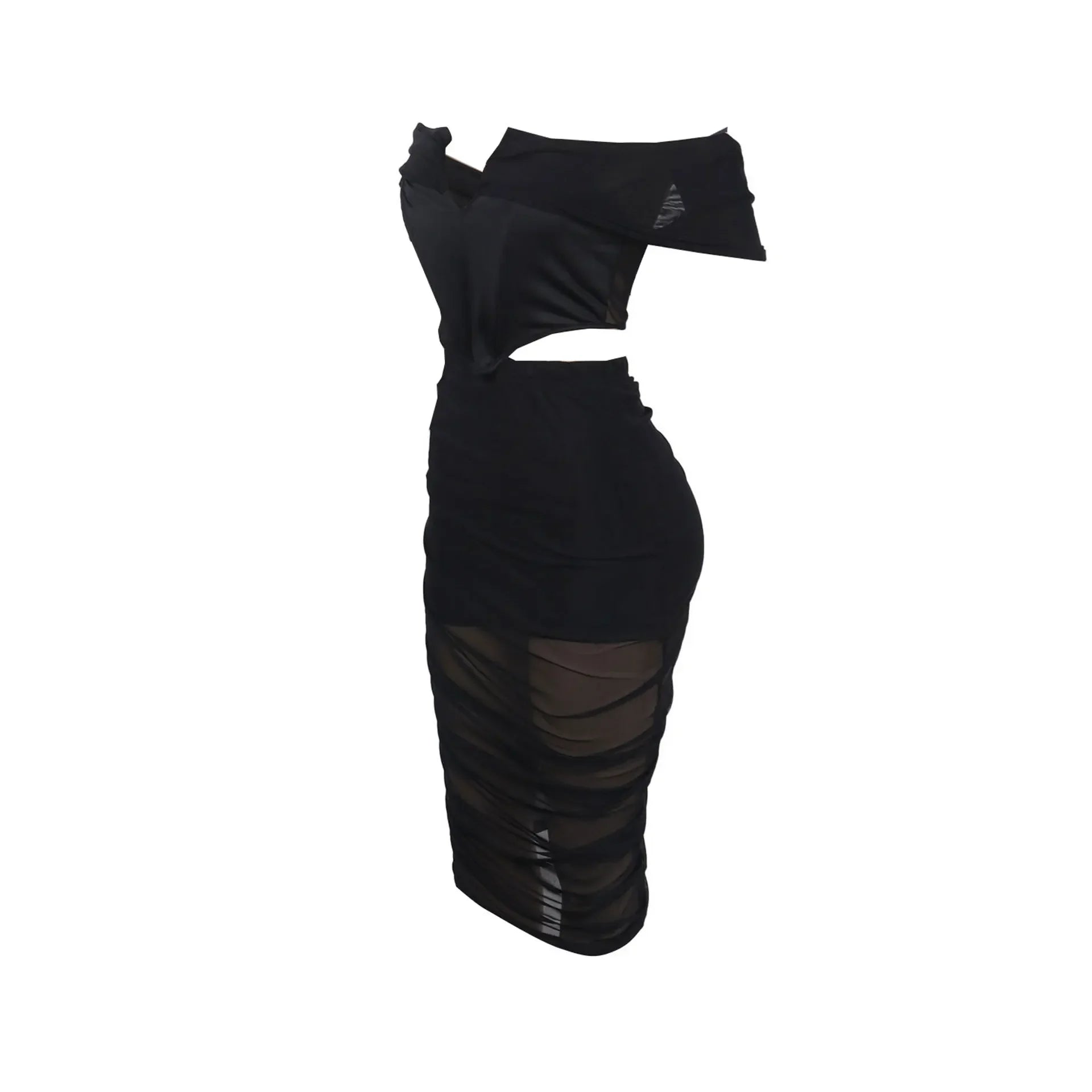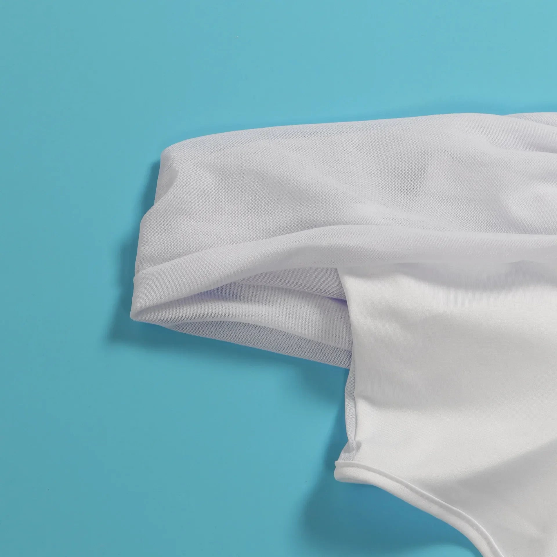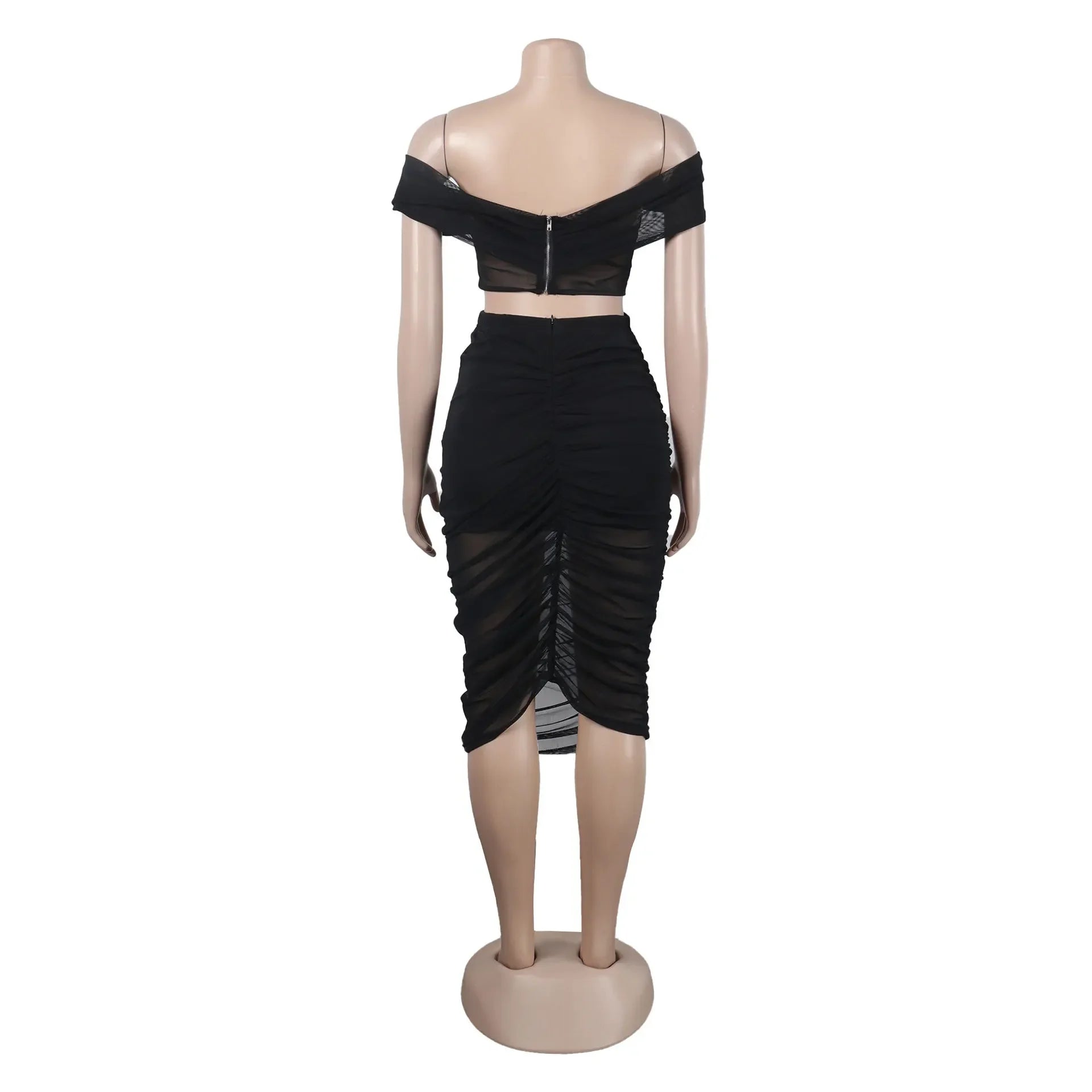 Slimming Mesh Splice Bum Covering Visibility Elastic Off-Shoulder 2-Piece Set European And American Style