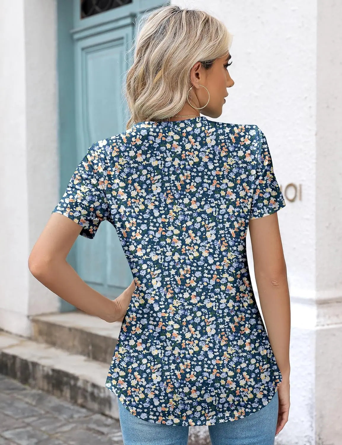 Womens Casual Crew Neck Short Sleeve Pleated Tops Blouses Fashion Clothes